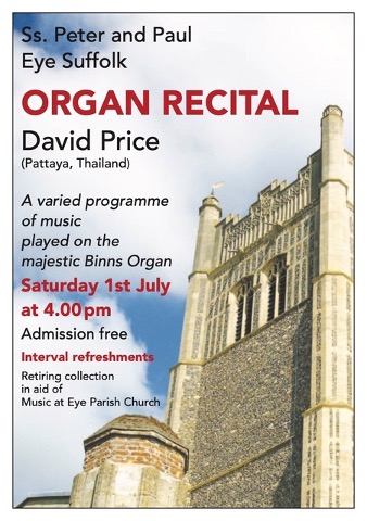 David Price Organ Recital St Perter and Paul Eye Suffolk July 1 2023